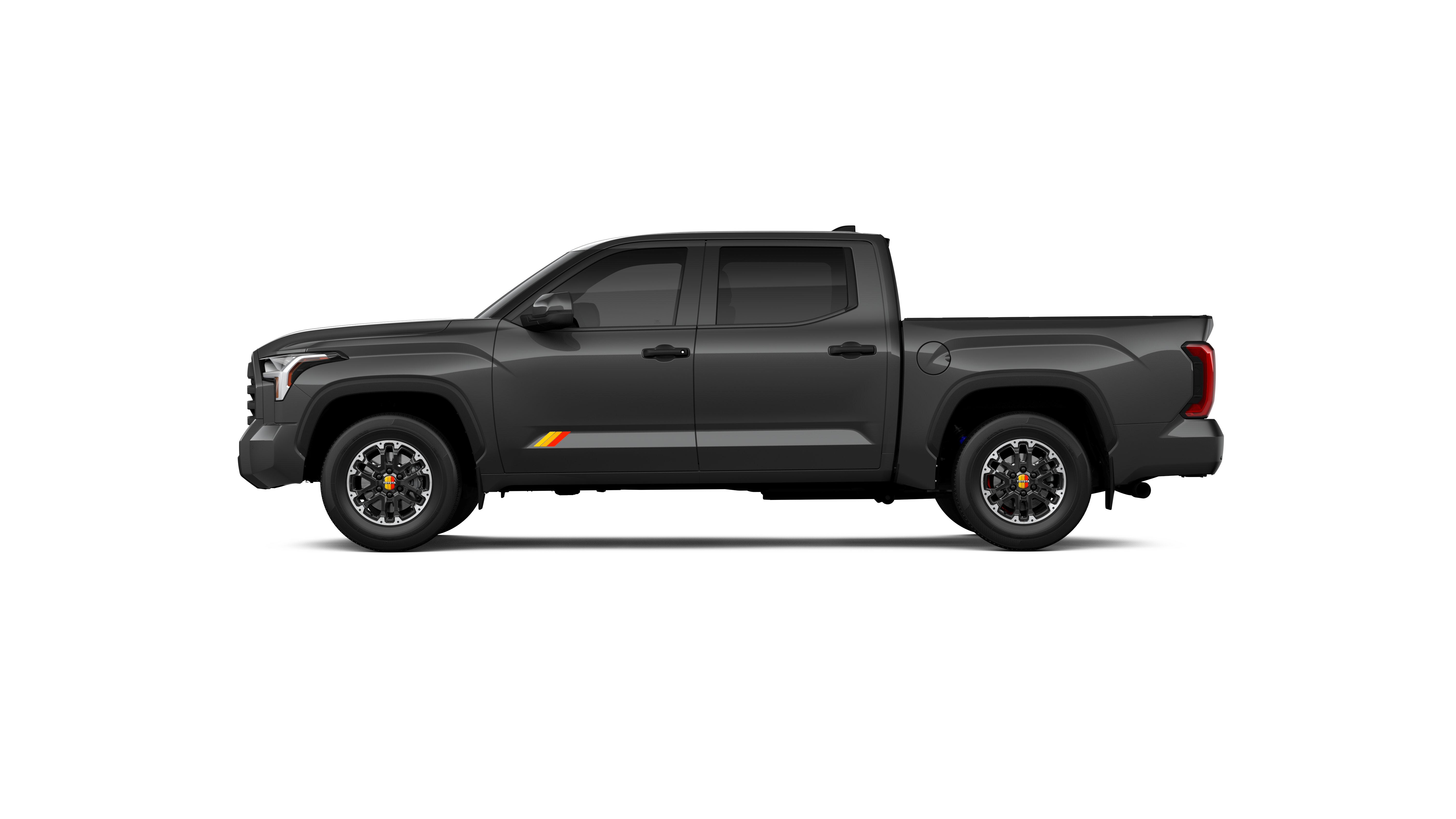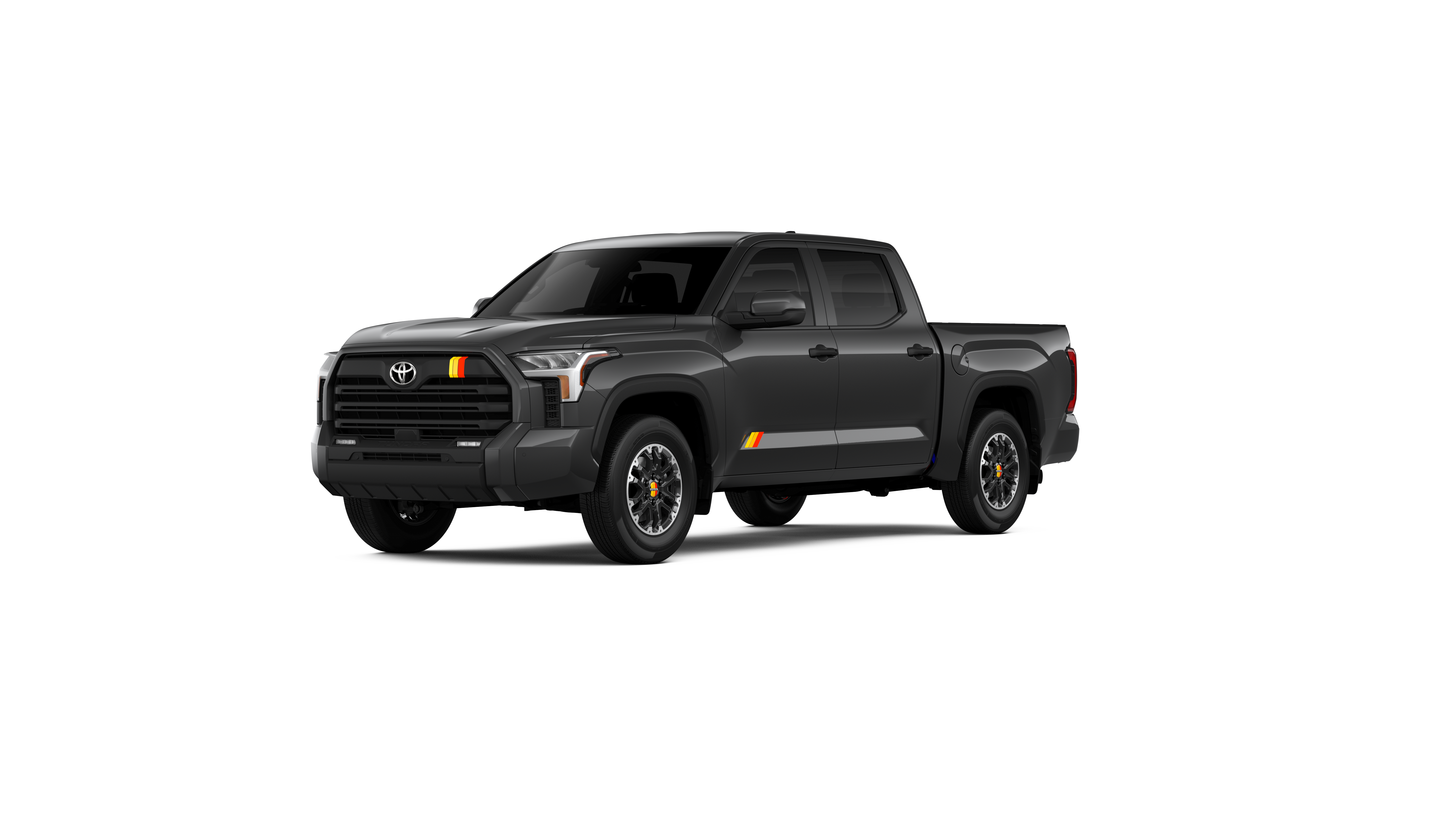 - Chrome "TUNDRA" and "SR5" door badges; black door handles, window molding, mirror caps, tailgate spoiler and overfenders