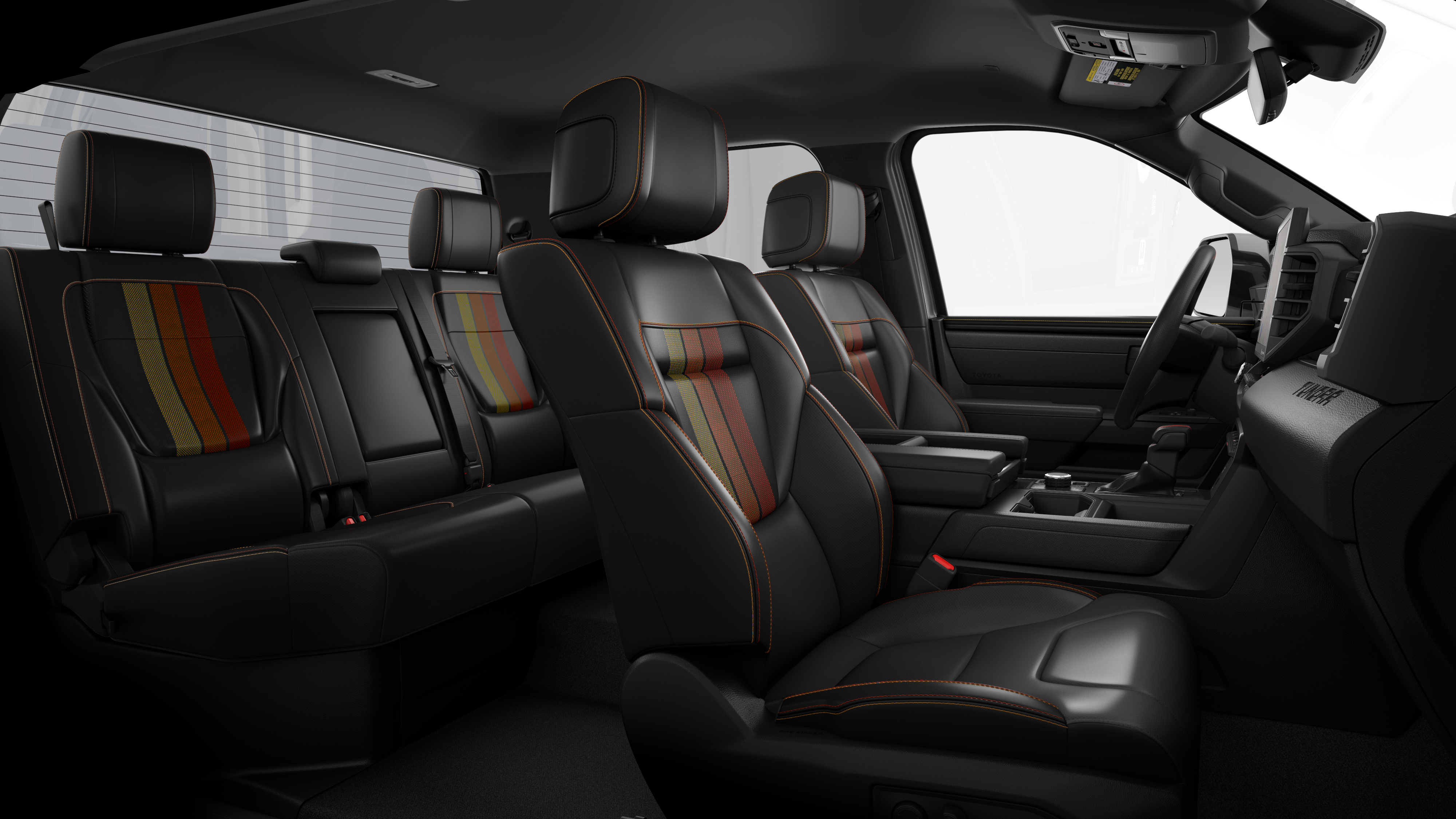 - SofTex®-trimmed tri-color seats with yellow and orange stitching
