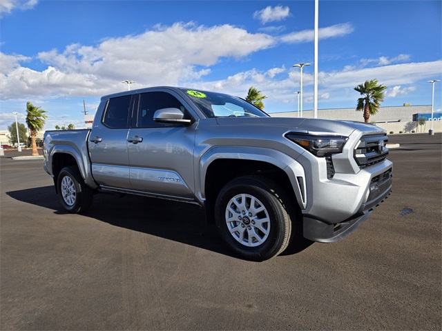 Certified. Celestial Silver Metallic 2024 Toyota Tacoma SR5 RWD 8-Speed Automatic 2.4L 4-Cylinder ABS brakes, Alloy wheels, Electronic Stability Control, Heated door mirrors, Illuminated entry, Low tire pressure warning, Remote keyless entry, Traction control.