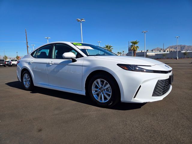 Certified. Ice Cap 2025 Toyota Camry LE FWD eCVT 2.5L 4-Cylinder 16V DOHC ABS brakes, Active Cruise Control, Alloy wheels, Electronic Stability Control, Front dual zone A/C, Heated door mirrors, Illuminated entry, Low tire pressure warning, Remote keyless entry, Traction control.