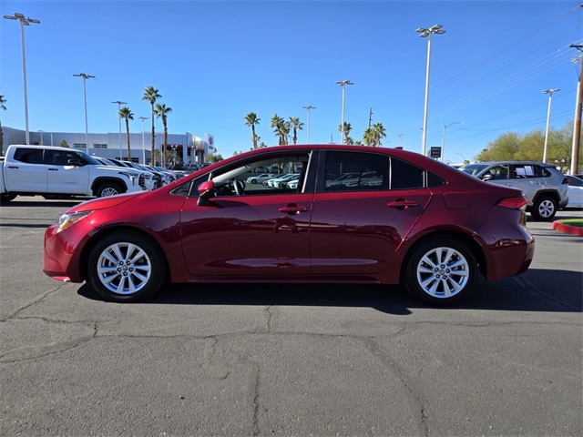 Certified. Ruby Flare Pearl 2025 Toyota Corolla LE FWD CVT 2.0L I4 DOHC 16V ABS brakes, Active Cruise Control, Electronic Stability Control, Illuminated entry, Low tire pressure warning, Remote keyless entry, Traction control.